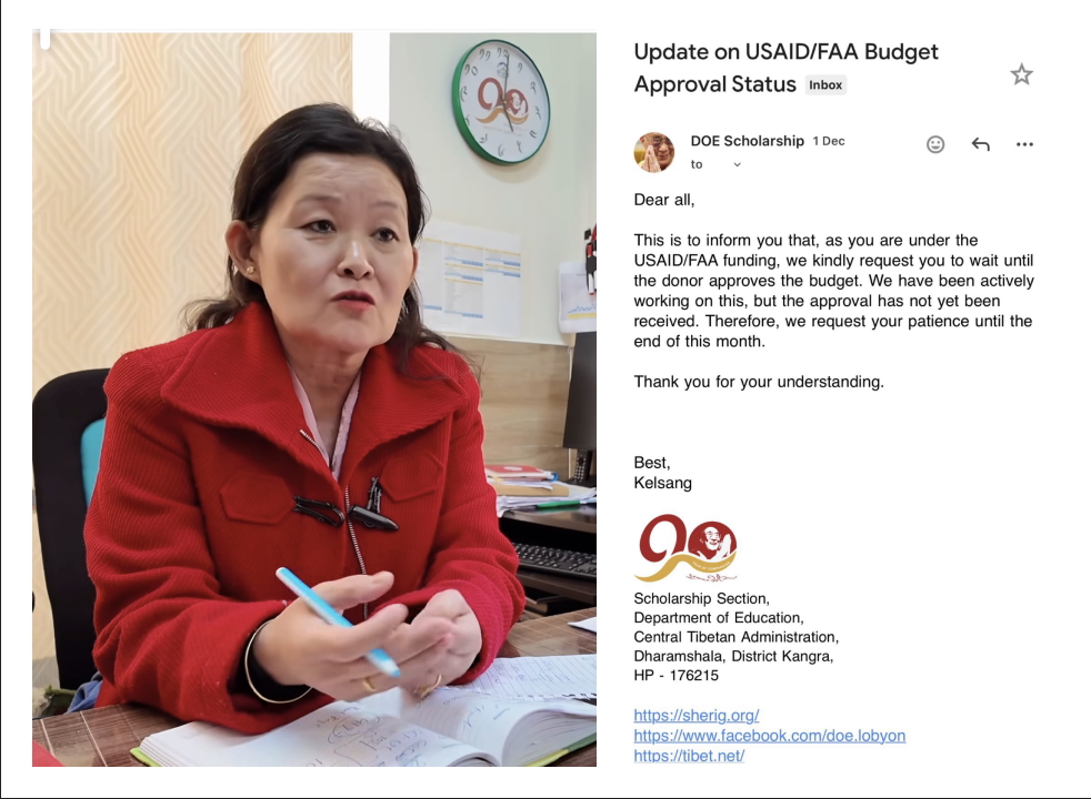 DHARAMSALA, 4 Dec: The Education Department of the Central Tibetan Administration, commonly referred to as the Tibetan Government-in-Exile, will use its corpus fund to provide scholarships for Tibetan students “next week,” as the USAID grant of 3 crore rupees for 400 students faces delays—possibly extending into next year—due to the recent US government shutdown.